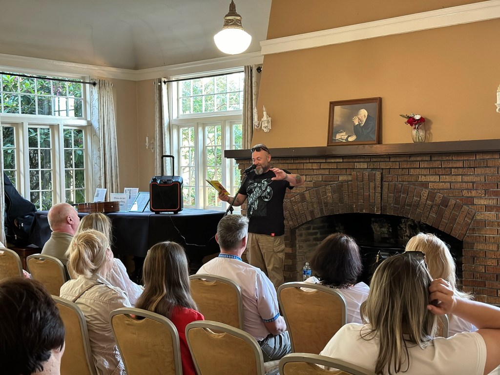 Під час зустрічі Руслан Горовий зачитував свої оповідання та вірші — проникливі й емоційні, з гумором і болем, про війну, втрати, силу й незламність. Присутні почули не лише літературні тексти, а й життєві історії з прифронтових територій, які автор бачив на власні очі.