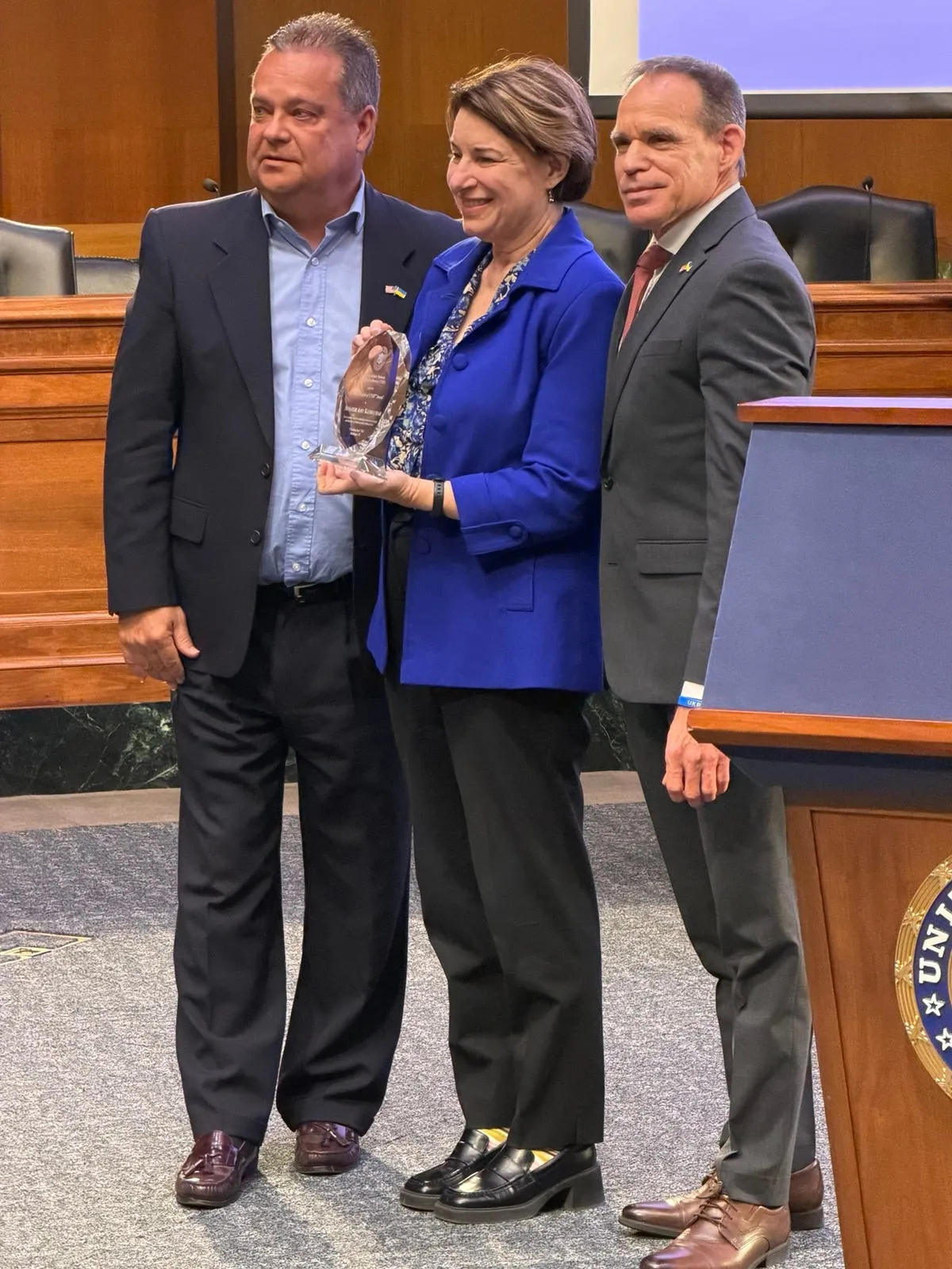 Разом із сенаторкою Клобучар нагороду отримав сенатор Річард Блюменталь (D-CT), який у 2024 році був удостоєний найвищої відзнаки українсько-американської громади — Шевченківської премії свободи. Сенатор наголосив на важливості подальших зусиль української громади для привернення уваги суспільства до воєнних злочинів росії в Україні.