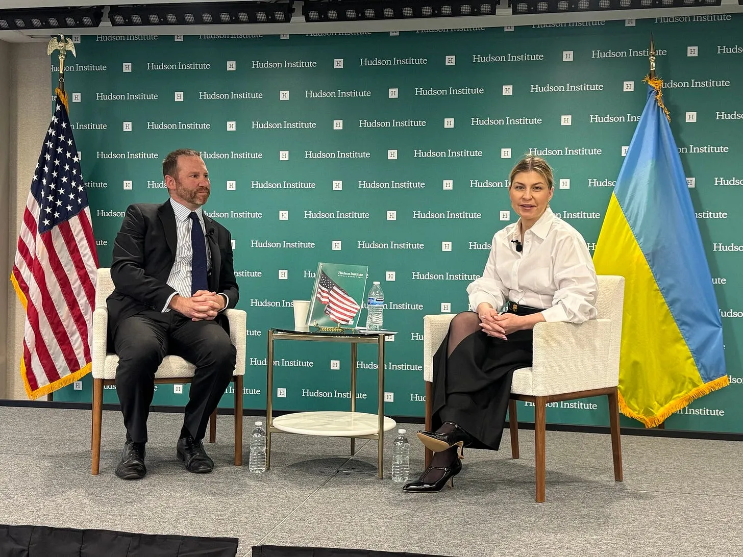 Так, дводенний захід розпочався ранковим брифінгом у Hudson Institute за участі спеціальної гості — Надзвичайного і Повноважного Посла України у США Ольги Стефанішиної. Посолка Стефанішина переконливо наголосила на нагальній необхідності продовження безпекової допомоги Україні, щоб швидко й рішуче виграти війну, а також виступила за посилення санкційного режиму проти росії, зокрема для закриття прогалин, які дозволяють росії й надалі отримувати доходи від продажу нафтопродуктів.