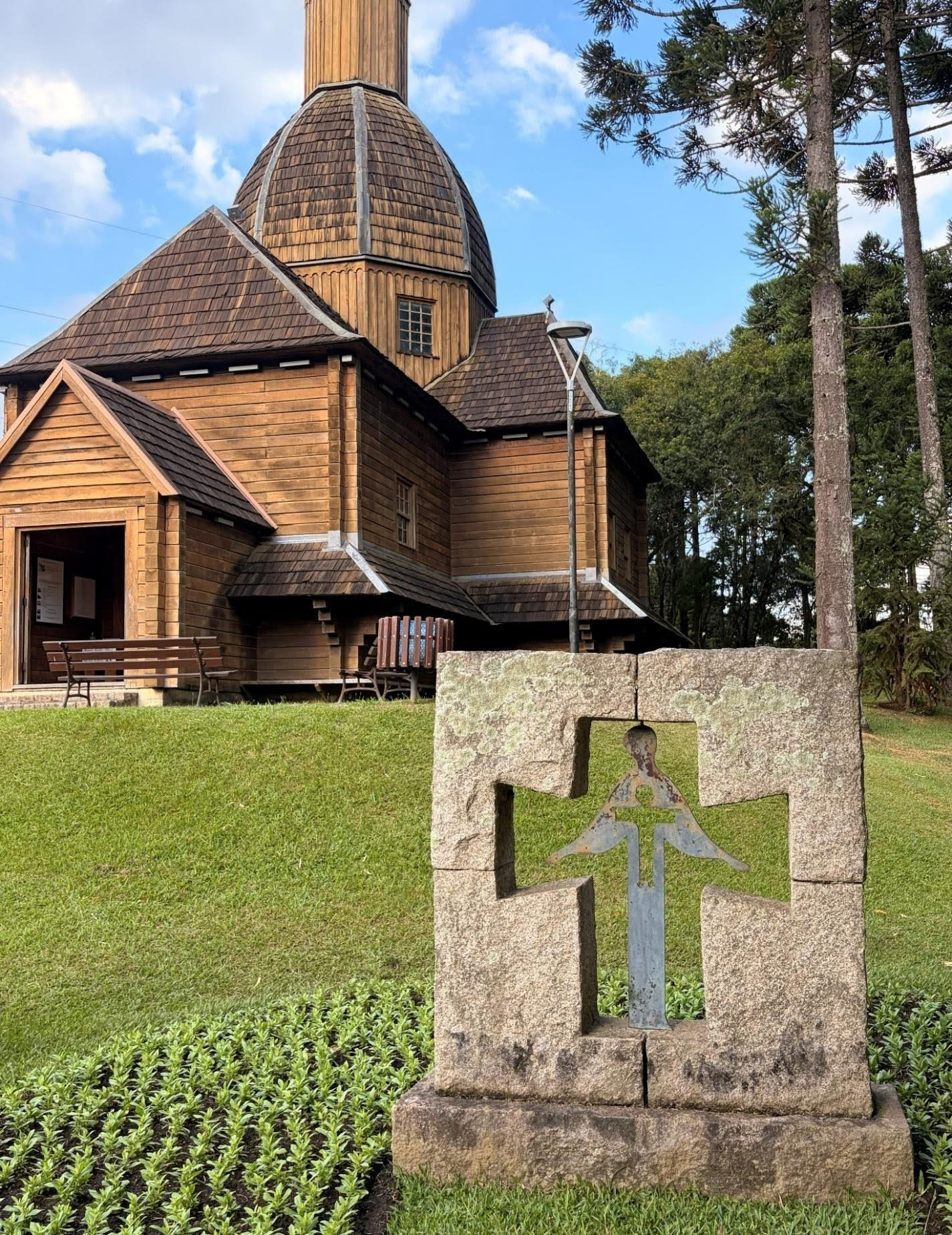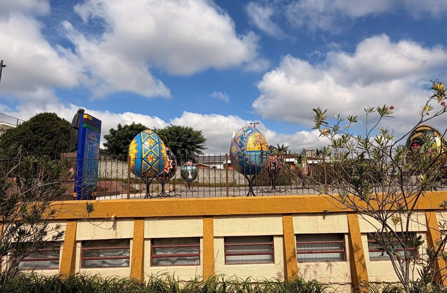 Коли ми приїжджали до Куритіби в четвер із курорту в горах Капіварі, ми відвідали прекрасні та обширні ботанічні сади міста і були приємно здивовані, побачивши, що в сувенірній крамниці продають писанки. Ми дізналися, що основними європейськими групами, які оселилися в Куритібі, були німці, українці та поляки. Ми вшанували пам’ятник Тарасу Шевченку на дуже чистій і впорядкованій Українській площі, розташованій у затишному районі міста, а потім вирушили до вражаючого Українського меморіалу, розташованого в прекрасному та великому муніципальному парку Тангуа. Доглянутий меморіальний комплекс має арку, дерев’яну каплицю, дзвіницю, доріжки, скульптуру у стилі писанки та сувенірну крамницю.