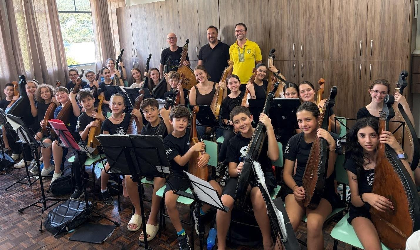 Родріго, аналітик ІТ-систем за професією, є чудовим бандуристом і керівником. Завдяки допомозі дружини Таїси та брата Рафаеля навчання гри на бандурі для понад 30 учнів організоване на високому рівні. Я провів два майстер-класи, під час яких знайомив учнів із новими творами, давав поради щодо техніки та розбирав вокальну композицію зі старшою групою. Хоча бандуристи здебільшого не володіють українською, багато хто розумів англійську, а Рафаель часто перекладав мені португальською. Мені дуже сподобалося слухати, як старша група прекрасно виконує аранжування Родріго до пісні «Ой у гаю, при Дунаю», і я цінував можливість пограти разом із ними.