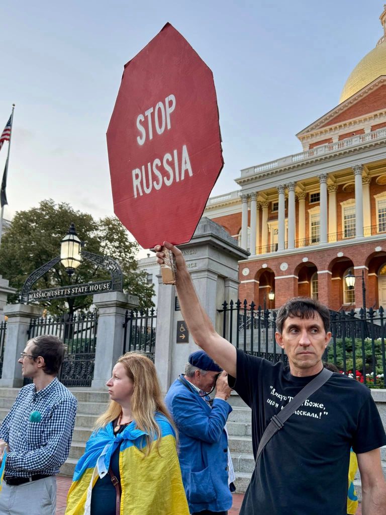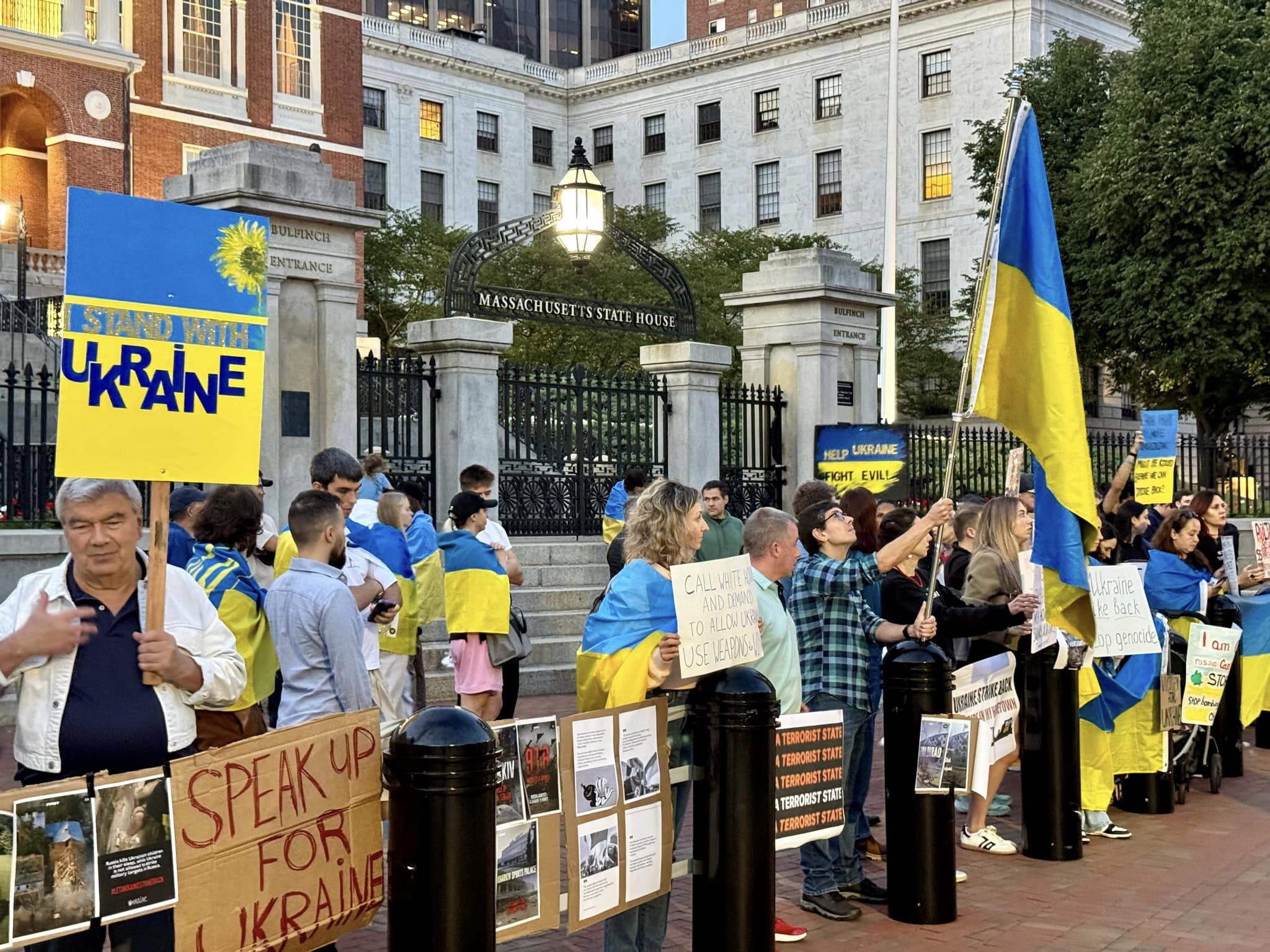 A rally "Stand Against Russian Aggression" was held at the Massachusetts State House in Boston, where dozens of Ukrainians gathered with flags and posters to express their support for Ukraine.