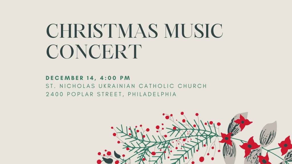 On December 14 at 4:00 p.m., the Ukrainian Catholic Church of St. Nicholas (2400 Poplar St., Philadelphia, PA) will host a Christmas music concert entitled "One Faith - Many Voices: God is with Us!"