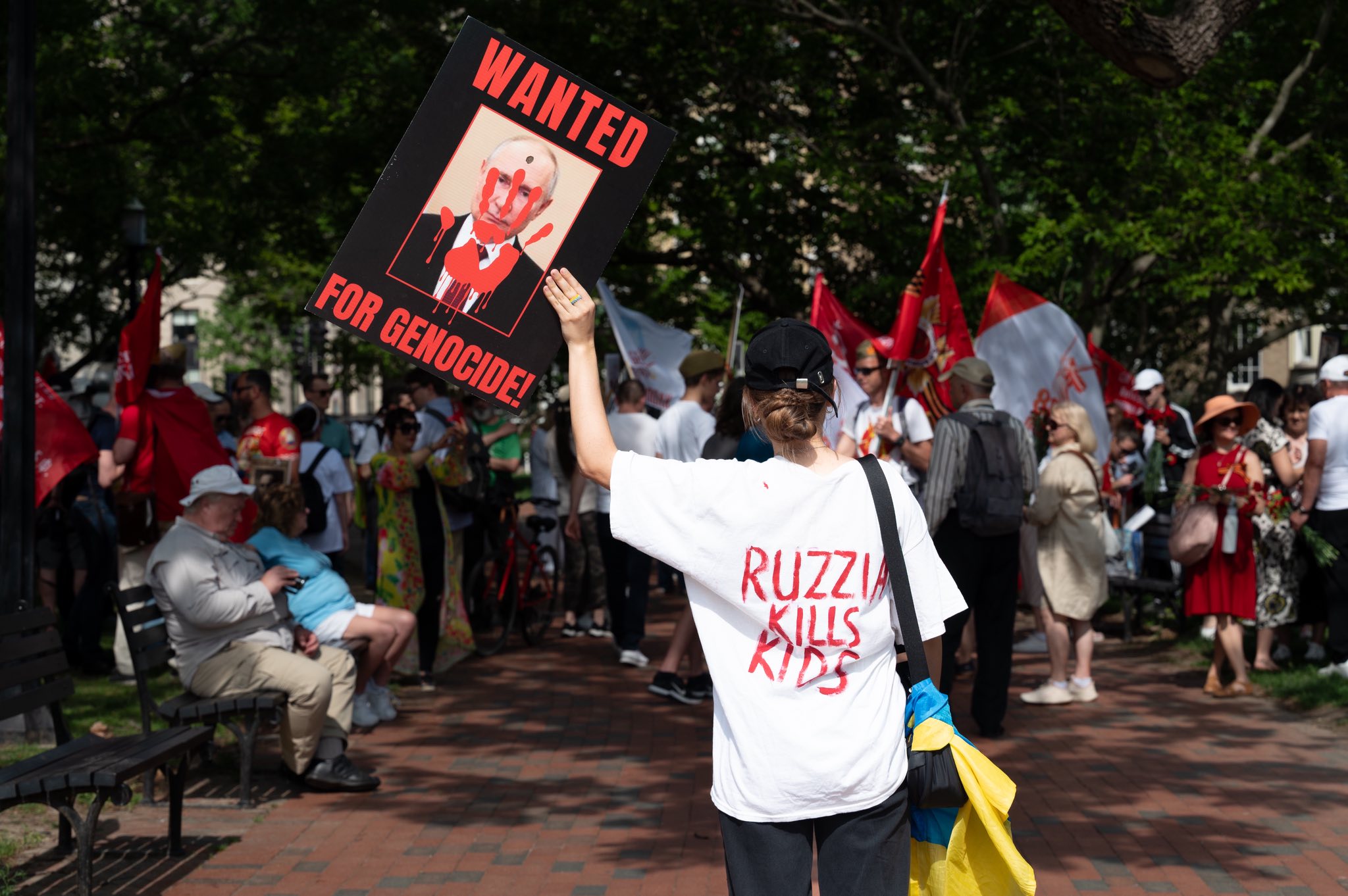 In the US capital, the Ukrainian community held a counter-protest at the World War II Memorial against the "Immortal Regiment" rally organized by Kremlin supporters. The Ukrainian diaspora and activists strongly opposed Russia's attempt to use the memory of the victory over Nazism to justify the current war against Ukraine.