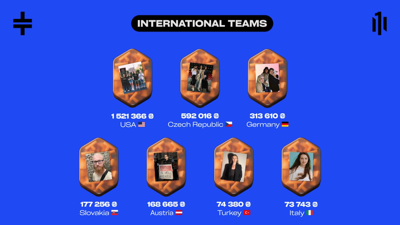 Most recently, Tylovyky launched international teams for the first time to mobilize Ukrainian diasporas. These teams received additional identifiers in the form of their countries’ national flags on fundraising cards.